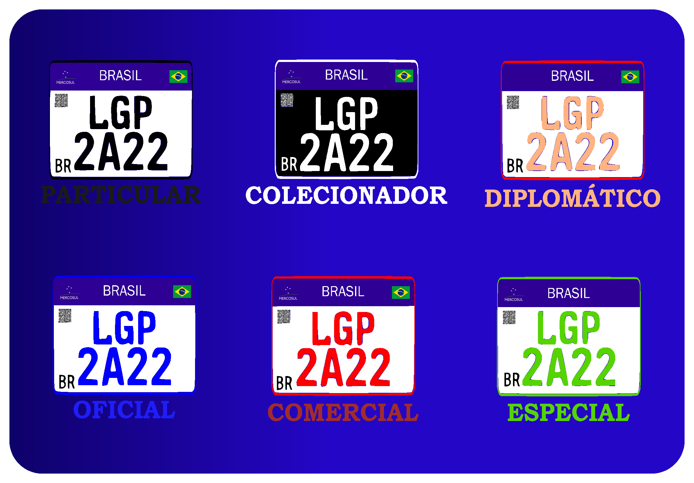 Confecção de placas padrão Mercosul para carros, motos e veículos comerciais.